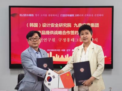 韓國設(shè)計安全研究院與遼寧九鼎宏泰防水科技有限公司產(chǎn)品提供戰(zhàn)略合作簽約儀式圓滿成功!
